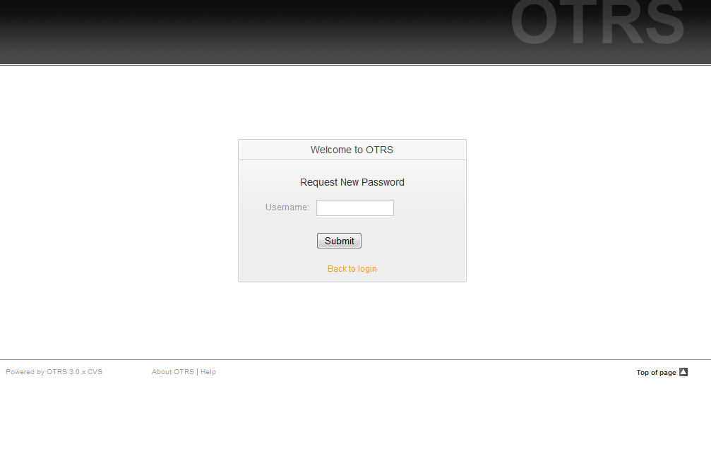 In case you have forgotten your password, you can request the system for a new password. Simply press the link below the Login button, enter the mail address that is registered for your OTRS account into the input field, and press the Submit button (see Figure).