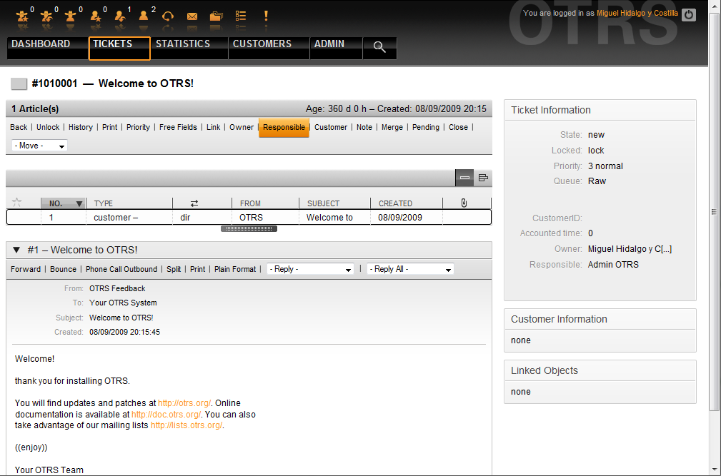 The list of all tickets for which an agent is responsible, can be accessed through the Responsible view of the OTRS agent interface, as soon as the ticket responsibility feature gets activated.