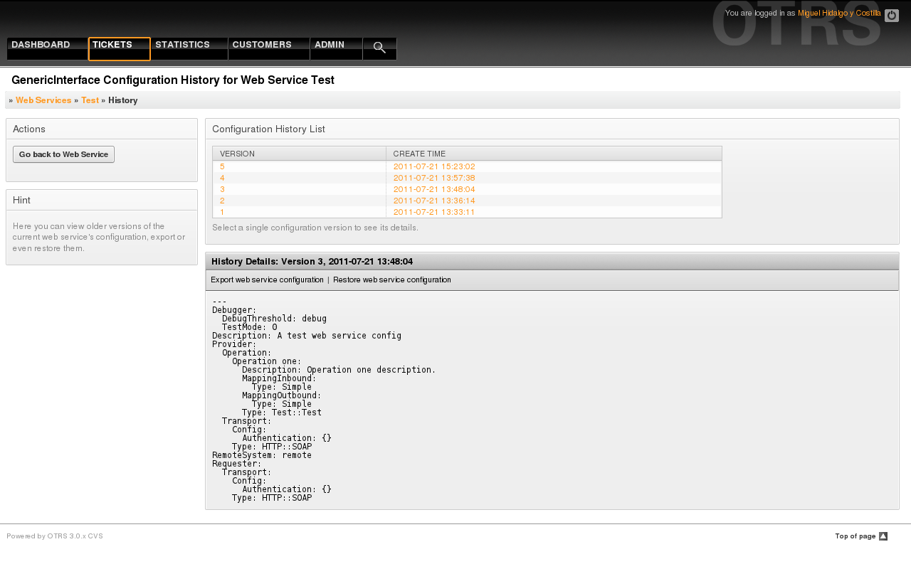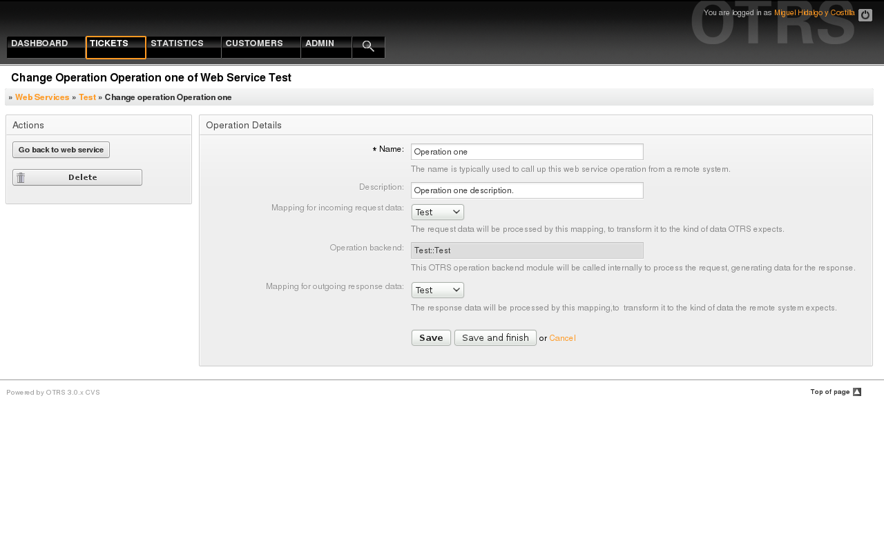 The heart of the Web Service is its configuration, where it is defined what actions the web service can perform internally (Operation), what actions the OTRS request can perform Remote System (Invokers), how data is converted from one system to the other (Mapping), and over which protocol the communication will take place (Transport)