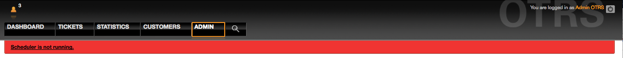 There are two different types of notifications if the system detects that the scheduler is not running. This detection is based on the update frequency of the Scheduler process. If the difference between current time and the last process update time is 2 times the process update frequency a warning message will be displayed in the OTRS notification area. If it is over 4 times the process frequency then an alert will be displayed instead.